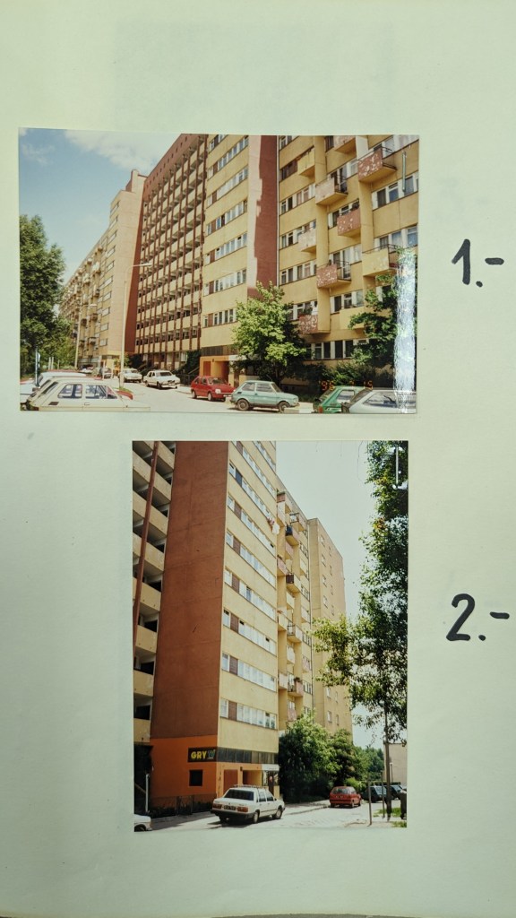 Jak wspomniałem, mrówkowce budowano na „odludziu”, w miejscu, gdzie wcześniej nie było zbyt wielu budynków. Jakieś jednak były, a dokumentacja techniczna budynków wskazuje, że proces wznoszenie blok pod numerem 56 (czyli tego nad Balatonem), trochę się wydłużył, bo czekano z rozbiórką zabudowań gospodarczych, należących do (jak wskazano) obywatela Bindera. Ta, miała zostać dokonana w I kwartale 1969 roku, dopiero po otrzymaniu przez tego jegomościa mieszkania (jak rozumiem, w ramach rekompensaty) na Miedzyniu. Ciekawe, czy ów człowiek, lub jego rodzina jeszcze mieszka w Bydgoszczy i zna szczegóły sprawy? Jeżeli tak, i ktoś z Was właśnie to czyta, dajcie znać!