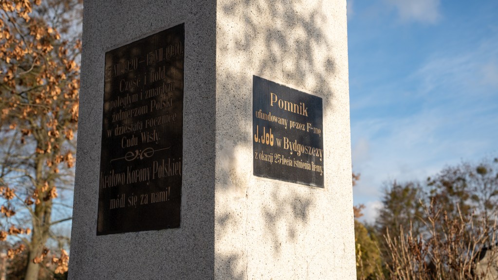 Co jednak ciekawe, 10 rocznica Cudu nad Wisłą, nie była jedynym powodem postawienia rzeźby. Drugą było 25-lecie firmy kamieniarskiej Jakuba Joba, która ten monument wykonała. Niby nic, ale ciekawostką jest fakt, że Job był… rdzennym Włochem! Tak jest – tak naprawdę nazywał się Giuseppe – a jego rodzina przywędrowała do Bydgoszczy z okolic Tarcento (w północnych Włoszech). Jakub (vel Giuseppe), mieszkał i pracował przy obecnych ulicach: Racławickiej, a potem Rejtana (być może kojarzycie piękną willę, spod numeru 8 – to właśnie tutaj!) i zasłużył się miastu wykonaniem wielu wartościowych dzieł sztuki kamieniarskiej.