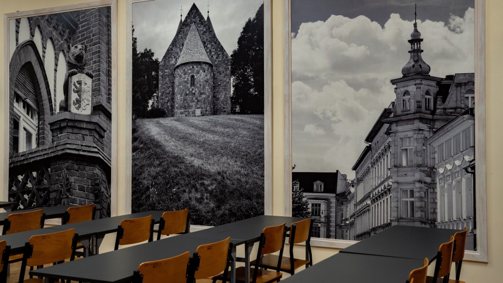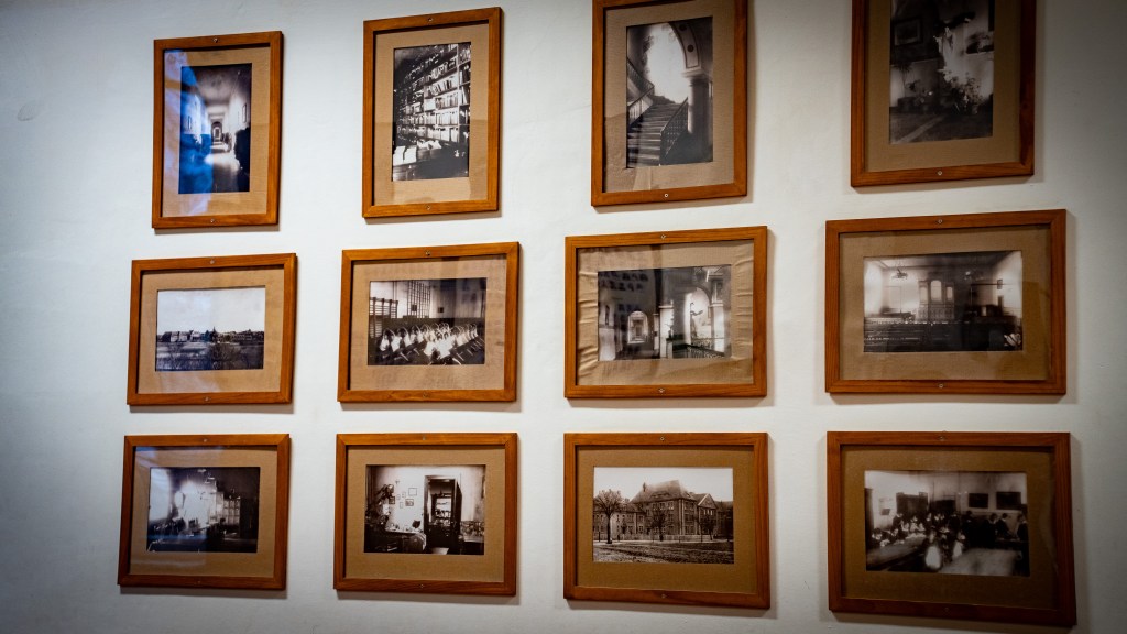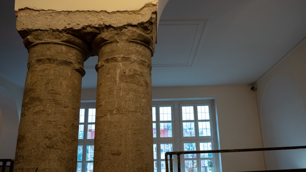 Niemniej, ewidentnie widać tutaj ducha historii. Szerokie korytarze, łukowate sklepienia, a także ciekawa stolarka okienna. Wszystko to robi spore wrażenie, a to tylko się wzmaga się, kiedy wejdziemy na pierwsze piętro – tutaj dostrzeżecie dwie najprawdziwsze kolumny! Odsłonięto je podczas jednego z ostatnich remontów, a podobne znajdowały (ba, znajdują!) się także obok i na parterze (tam musi być ich nawet więcej), ale wciąż pozostają przykryte warstwą bardziej współczesnych elementów. Może kiedyś to się zmieni?