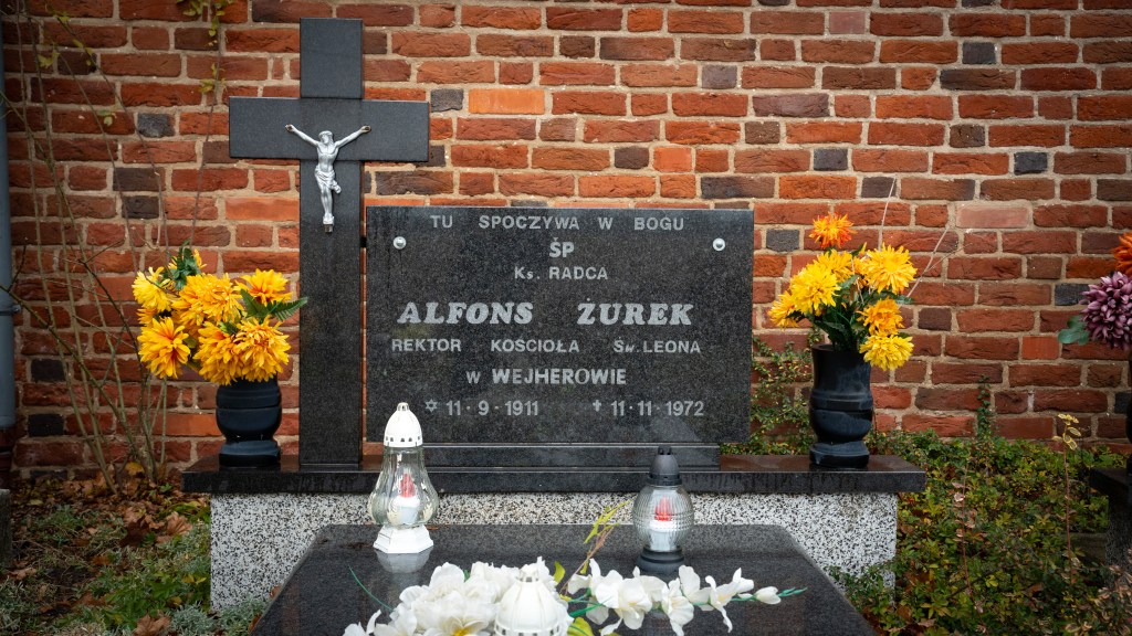 Na tym ostatnim grobie znajdują się historyczne porcelanki, tj. zdjęcia portretowe zmarłych – księdza Czajkowskiego niestety mocno uszkodzona, zachowana w połowie. Nad nagrobkiem matki i syna wznosi się bardzo charakterystyczna figura, pochylobego anioła. To oczywiście nie wszystko bo są tutaj i inni duchowni, choćby Alfons Żurek, rektor kościoła pw. św. Leona w Wejherowie.