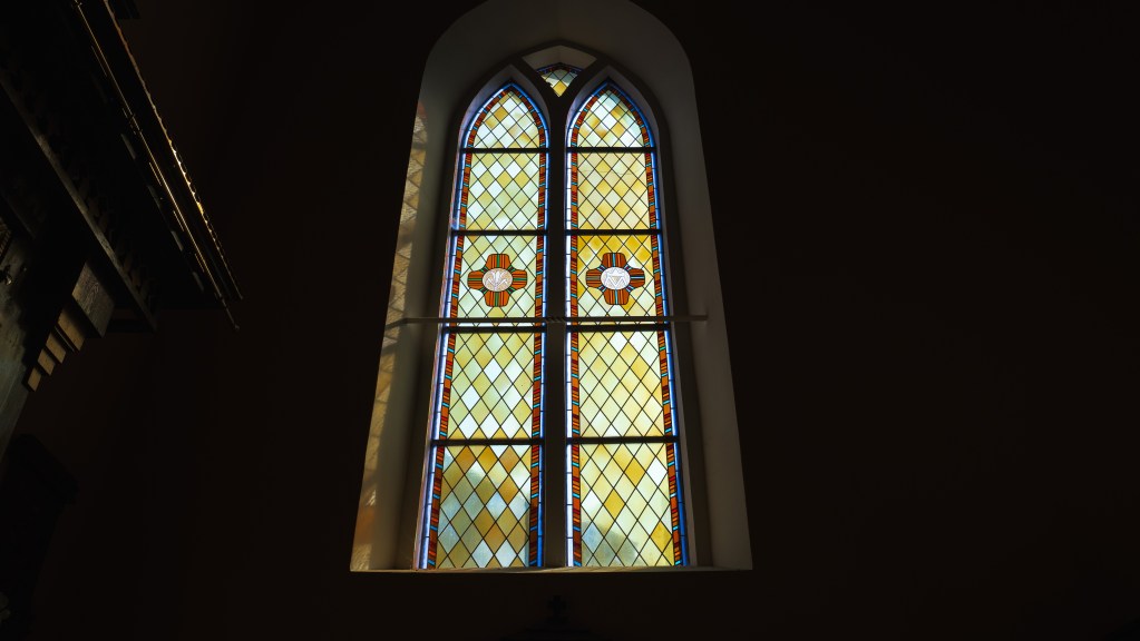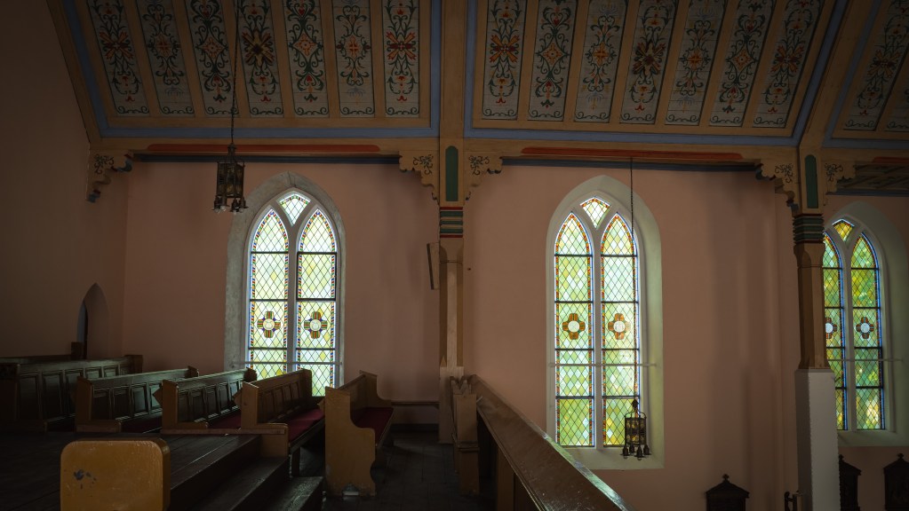Co do remontu – był jeszcze remont w roku bodaj ok. 1987 roku – wtedy też powstał witraż za krzyżem w ołtarzu głównym (wczesniej nie było tam okna), wtedy też powstały malowidła z sakramentami świętymi o których Pan pisze + pełne malowanie całego kościoła (łączniez sufitem). Kolejny remont to zakończony w 2023 – malowanie wewnątrz (bez sklepień).