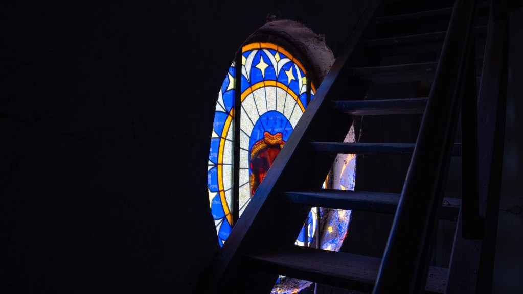 Po drodze, jak zwykle w historycznych kościołach, mijamy wejście do „sali” nad sklepieniem. Mowa o przestrzeni pod więźbą dachową, znajdującej się między górną częścią kościelnego sklepienia, a dolną częścią dachu, która – ze względów technicznych – zwykle jest nieźle dostępna. Widać tutaj jak na wyciągnięcie dłoni żebra, samą misterną konstrukcję sklepienia oraz belkowanie. Środkiem, na całej długości, prowadzi bardzo wygodny pomost.