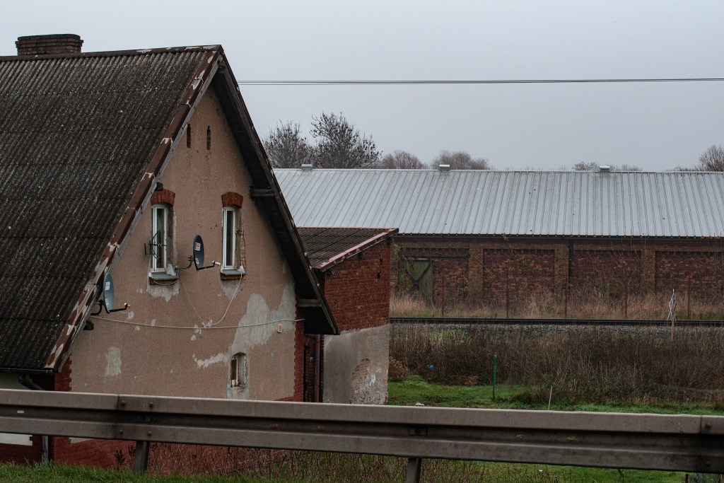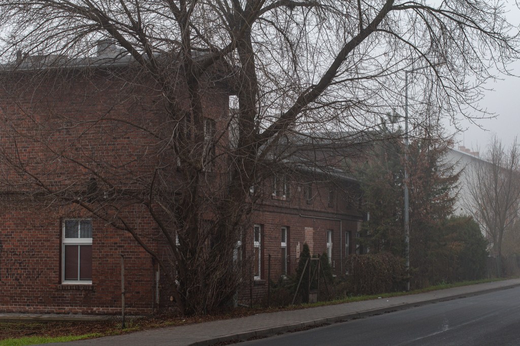 No dobra, czyli ciekawej zabudowy tutaj nie uświadczymy? – możecie zapytać w myślach. No więc śpieszę z odpowiedzią. Na szczęście nie jest z tym tak źle! Poszukiwania ciekawych obiektów rozpoczniemy od ulicy Mątewskiej, gdzie początkowo naszym oczom znowu ukazują się nowoczesne hale produkcyjne oraz nieliczne, długie i niskie baraki. Odnośnie tych ostatnich, nie wiem, czy nie mają przypadkiem tragicznej historii, ale o tym wspomnę dalej.