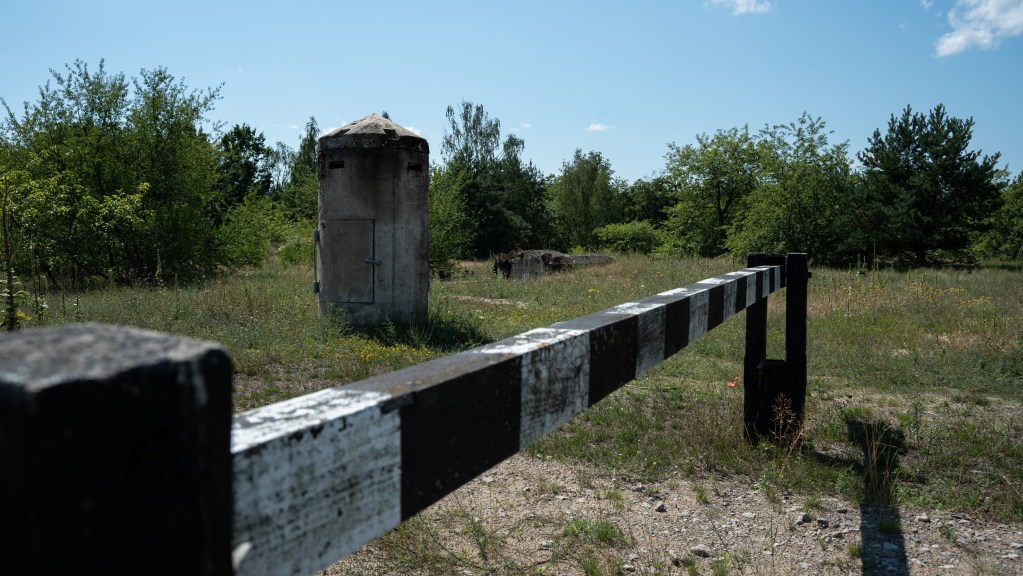 Nad nim góruje wzniesienie, na którym dostrzeżecie jeszcze ruiny wieży wodnej. Konstrukcja z początku XX w. zaopatrywała cały militarny kompleks w bieżącą wodę, a dziś niestety już tylko straszy. Stan obiektu jest bardzo kiepski, toteż uważajcie, podziwiając ją z bliska (to jest możliwie, z uwagi na zniszczone ogrodzenie – nie da się jednak wejść do środka).