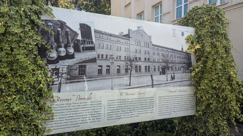 Wracamy jednak na Rynek, którego północnej pierzei nie ma, gdyż zmiótł ją osławiony wybuch. Wśród „poległych” znalazł się niestety słynny Browar Pomorski, którego początku sięgały początku XX w. i działalności E. Thomsa. W 20-leciu międzywojennym firmę przejął Józef Chronowski, który przybył do Podgórza z USA. To właśnie on rozwinął browar do skali krajowego potentata i nadał mu nazwę Browar Pomorski. Wśród specjałów zakładu znajdowały się takie piwa jak: „Śmietanka Pomorska”, „Karmel Pomorski i „Koźlak”. W czasie okupacji, w piwnicach browaru znajdował się szpital wojskowy i to właśnie znajdujący się w nim Niemcy byli głównymi ofiarami wybuchu trotylu. Swoją drogą, ruiny browaru nie zniknęły z przestrzeni Podgórza od razu po wojnie, a dopiero w 1948 r.