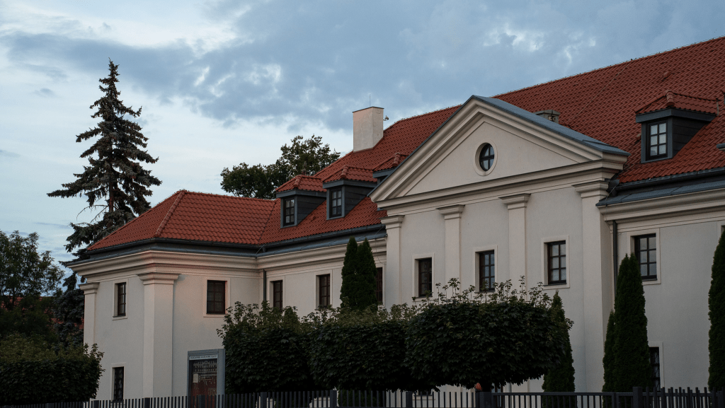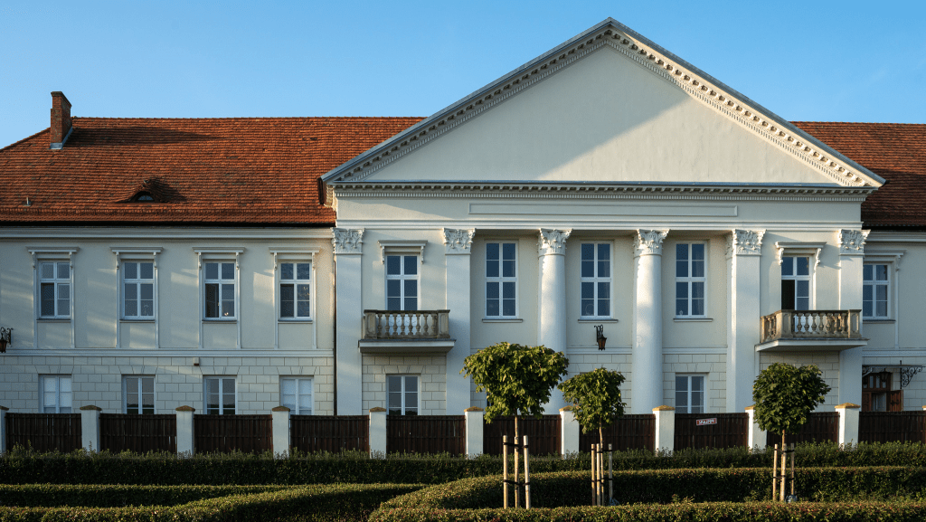 To co widzimy dzisiaj z zewnątrz, to efekt wielu przebudów – głównie tej z połowy XIX wieku, która nadała mu wiele klasycystycznych cech. Wówczas utracono bezpowrotnie sznyt barokowy. Nie żałujmy jednak zbytnio, bo budynek jest naprawdę ładny. Wielkie wrażenie robią przede wszystkim potężne kolumny strzegące wejścia i wznoszący się na nim, ogromny fronton.