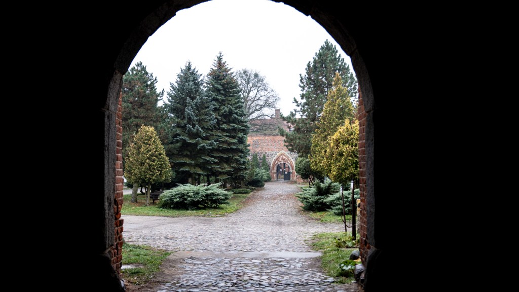 Najpiękniej i najciekawiej jest oczywiście na zamku głównym. Do niego wchodzimy przez niewielki, zdobiony portal (co to za zdobienie, piszę niżej), aby stanąć na zdecydowanie mniejszym niż ten na przedzamczu, ale jakże pięknym dziedzińcu! Bardziej niż na zamku, możemy się tutaj poczuć jak w… klasztorze! W zasadzie to chyba dobrze, bo wpisuje się w obecny zarząd nad obiektem. Sporo tutaj zieleni, czuć spokój, atmosferę wyciszenia i pewną magię. Przypomina mi to trochę dziedziniec klasztoru benedyktynów w Mogilnie, który jednak (mówię z ręką na sercu) jest najpiękniejszą tego typu miejscówką w naszym regionie.