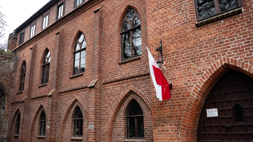 Bezsprzecznie najcenniejszą pamiątką zmos czasów minionych, którą dostrzeżecie na terenie zamku, jest tympanon. Mowa o detalu powstałym w okresie 1270-1300, najstarszym zachowany na terenie dawnych Prus Królewskich. Co istotne, relief umieszczony w tympanonie, jest wykonana z terakoty – tym bardziej zaskakujące i cenne, że zachował się do dziś. A co przedstawia? No więc tutaj nie ma już pewności.