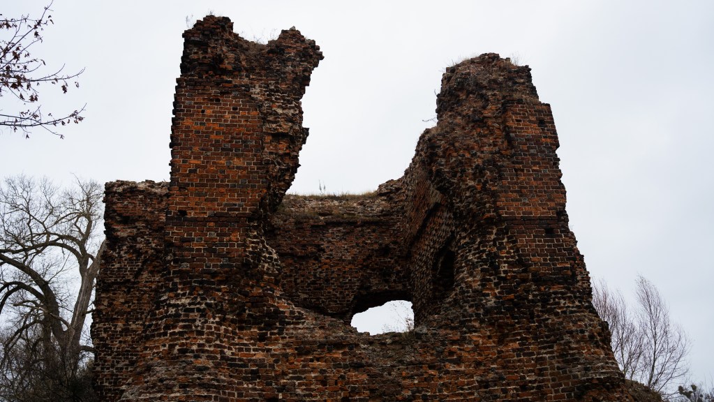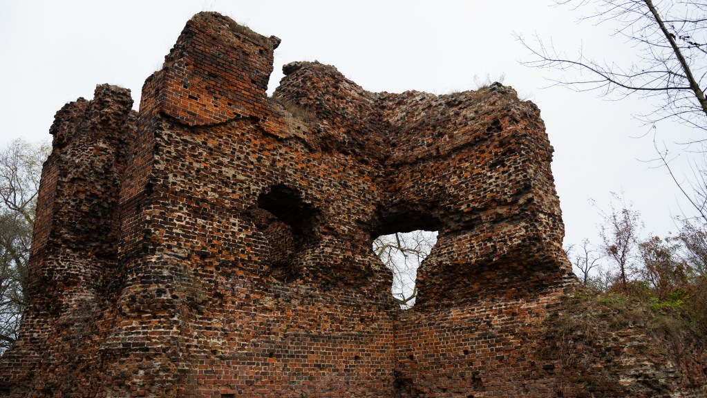 Nie oszukujmy się – dziś zamek to prawdziwa ruina. Malownicza, owszem, ale jednak ruina. Wysoki, ceglany mur, dostrzeżcie już z daleka – przy dobrej widoczności i braku liści na drzewach, nawet z drogi prowadzącej z Torunia do Złotorii, a już na pewno z kilkusetmetrowej ścieżki, wiodącej wzdłuż pól uprawnych nad Wisłę. Stąd wygląda jednak, że ten jeden ceglany „filar” to wszystko co zostało z twierdzy.