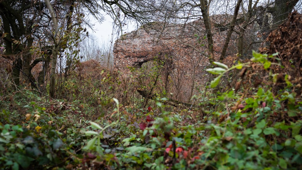 Poza tym są jednak dość liczne fragmenty murów obronnych zamku. Te znajdziemy, rozrzucone na naprawdę dużym terenie – nawet w bezpośrednim sąsiedztwie Wisły. Oczywiście, ich stan określić należy jako fatalny, ale jednak – wciąż tutaj są! Na podstawie odkrytych fundamentów, niewidocznych gołym okiem, określić można w przybliżeniu kształt dawnej konstrukcji.