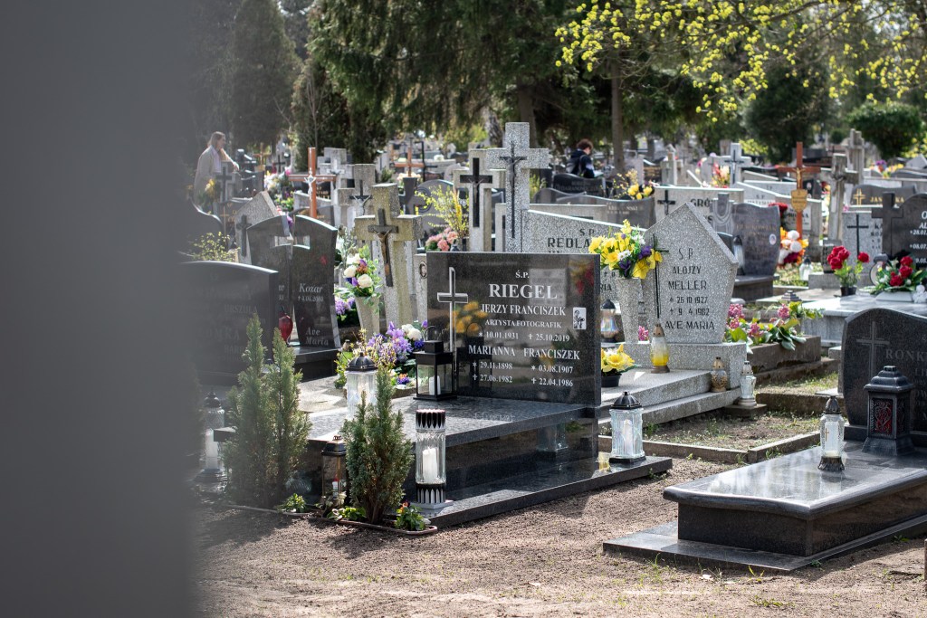 Nieco młodszy – nieznacznie, bo powstał w 1929 roku – jest zdecydowanie większy (ponad 8 ha) sąsiedni cmentarz parafialny. Tutaj historia jest jeszcze silniej wyczuwalna. No i jest jej – dosłownie – więcej, bo spoczywa tutaj ponad 30 tysięcy osób. Na środku nekropoli stoi dodatkowo ciekawy obiekt sakralny – drewniana kapliczka z 1929 roku (data wskazująca na rok budowy znajduje się nad wejściem).