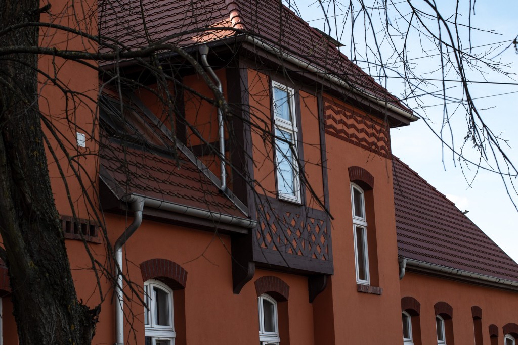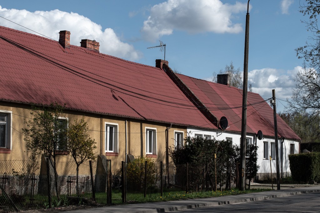 Szereg ciekawych domków z wysokimi, spadzistymi dachami i charakterystycznymi okiennicami, z wyciętymi w nich kształtami serca, znajduje się z kolei przy ulicy Poprzecznej.