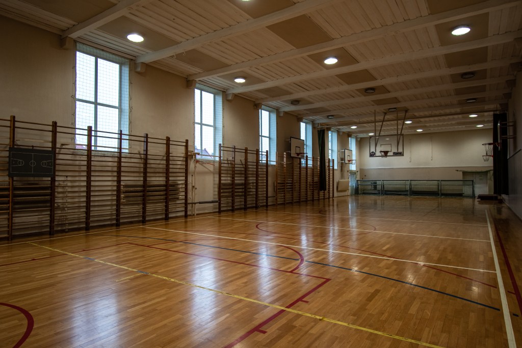 Nieco mniej nowocześnie wygląda z kolei część sportowa. Korytarze, które do niej prowadzą (schodząc w dół, wydawałoby się do piwnic), wyglądają dokładnie tak, jak je zapamiętałem sprzed dekady. Natomiast sama sala, mimo, że do najnowszych nie należy, trzyma się nieźle. Wciąż zaskakuje jej bardzo wydłużony i wąski kształt – umożliwiający podzielenie na dwie mniejsze części.