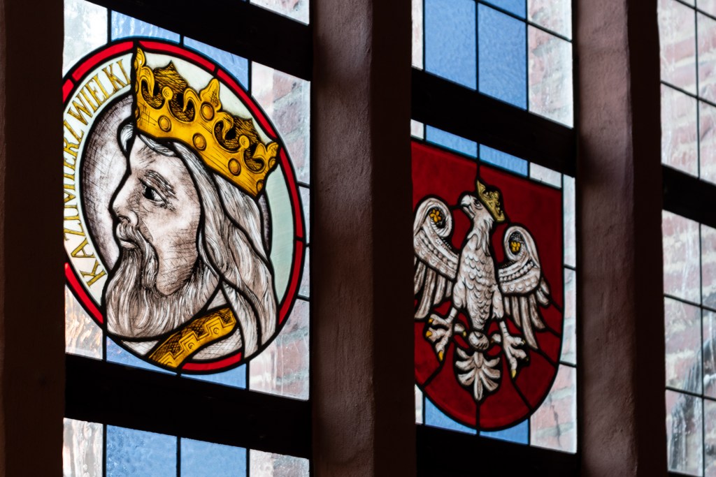 Przestrzeń, ceglane ściany, kamienne posadzki (gdzieniegdzie urozmaicone ciekawą mozaiką) i stylowe, drewniane sufity – wszystko to składa się na atmosferę tego miejsca.  Jest też kilka ciekawych witraży, nawiązujących do logotypu uczelni, a także patrona – króla Kazimierza III Wielkiego. Gdzieniegdzie przy parapetach zachowały się także oryginalne, kamienne misy, pamiętające jeszcze czasy Albrecht Dürer Schule. Zdaje się, że dawniej służyły one jako umywalki.