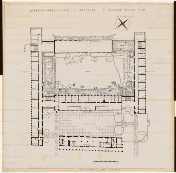 Główny gmach uczelni jest relatywnie młody (a na pewno młodszy, niż to się wielu bydgoszczanom wydaje), gdyż powstał dopiero w końcówce lat 30. XX wieku. Co ciekawe, wzniesiono go jaką szkołę niemiecką, mimo że miało to miejsce już w 20-leciu międzywojennym, po powrocie Bydgoszczy w granice Rzeczypospolitej. Dziwić to jednak nie powinno, wszak Niemcy stanowili wówczas ok. 10 procent całej populacji miasta. Zdecydowano więc, że właśnie na nich potrzeby, wybudowana zostanie Albrecht Dürer Schule – bo tak oficjalnie nazywała się placówka.