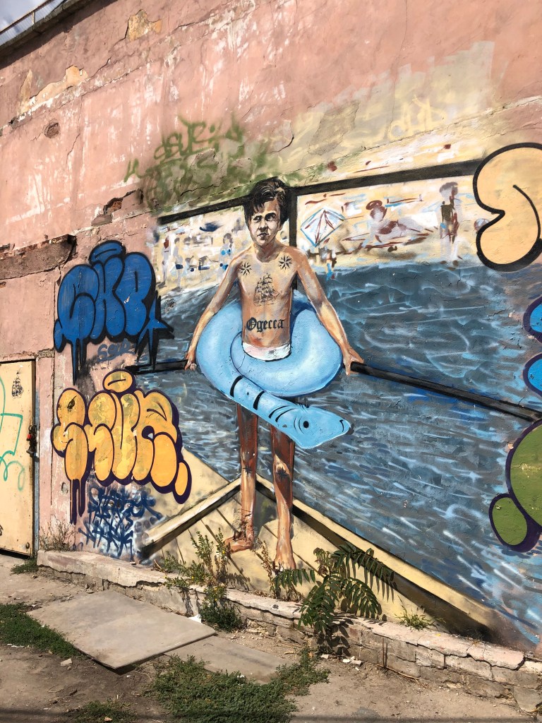 W Koblevie są też dwa zespoły otwartych basenów, tj.: Aquapark „Otel Koblevo” i Aquapark „Orbita”. Moją uwagę zwróciły jednak konstrukcje w postaci zjeżdżalni i wież, wznoszące się nad alejami wspomnianego targowiska w centrum miejscowości. Zapytałem o to Innę i okazało się, że i tutaj znajdował się niegdyś park wodny, z tym że zamknięto go ze względów bezpieczeństwa. Nie ma się zresztą co dziwić, bowiem zjeżdżalnie o których piszę wyglądały na otwarte, a znajdowały się jakieś 10 metrów nad ziemią…