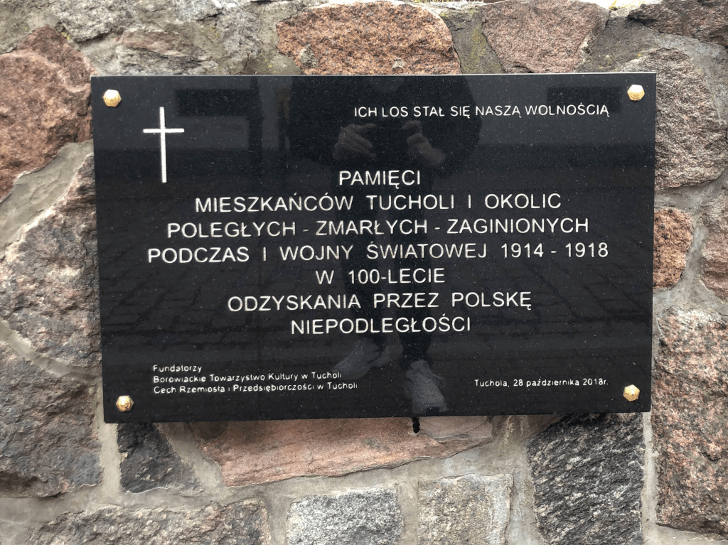 Aspektem, która wyróżnia Tucholę, jest bardzo duża liczba miejsc pamięci. Naprawdę, jest ich tutaj bardzo, bardzo dużo. O tragicznych losach miasta i jego mieszkańców przypominają więc: cmentarz jeńców wojennych z czasów I wojny światowej, cmentarz ofiar wojny polsko-bolszewickiej czy zabytkowy cmentarz parafialny. Są też pomniki, jak ten w Rudzkim Moście, ustawiony w miejscu masowych mordów dokonywanych na Polakach po wkroczeniu do miasta Niemców, w 1939 roku. Są też liczne tablice, np. przy Placu Wolności (starym rynku), która oddaje hołd ofiarom I wojny światowej, czy przy ul. Dworcowej, gdzie mieściło się więzienie hitlerowskie.