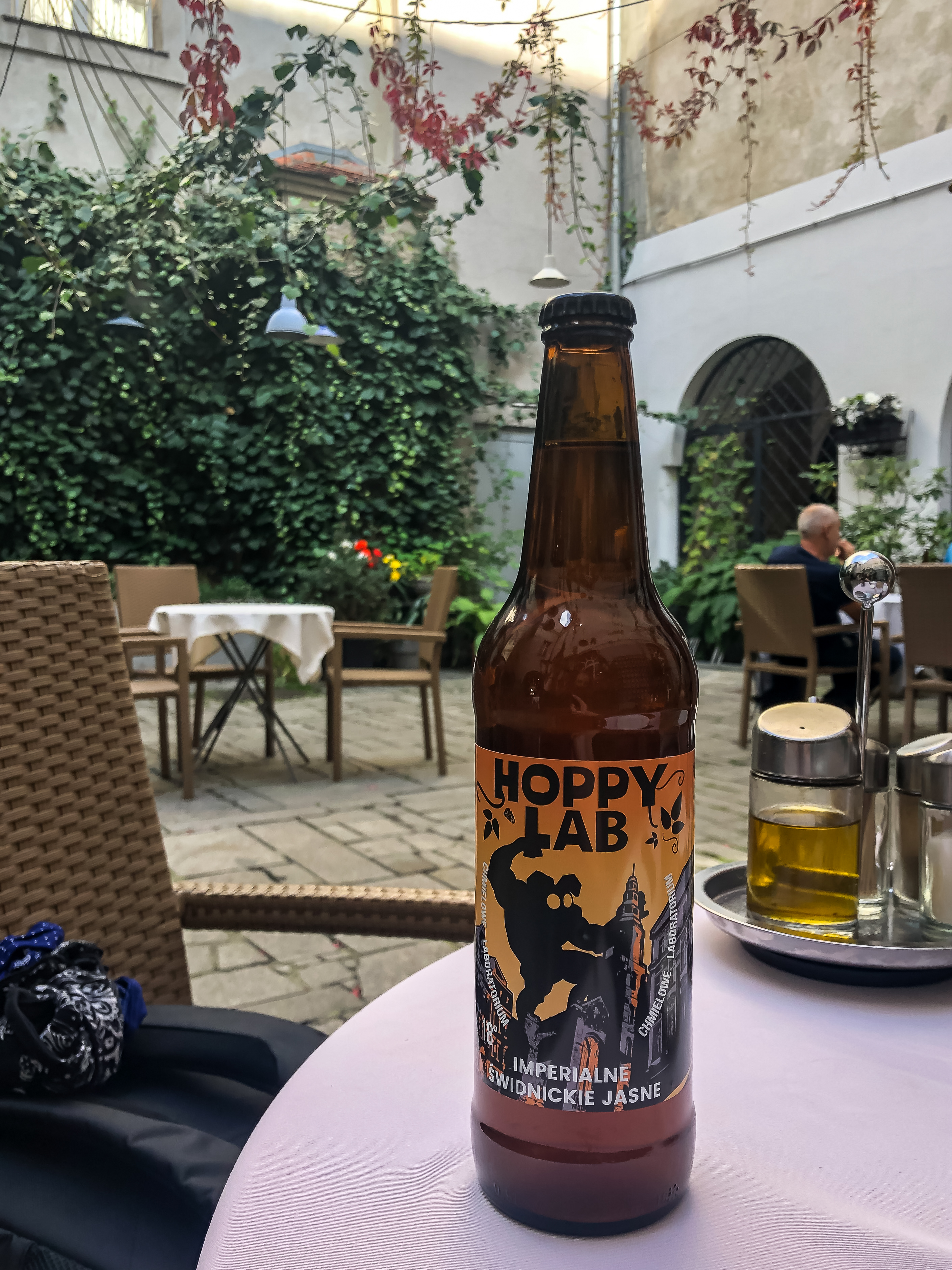 Czymże byłaby jednak turystyka bez jedzenia? Na koniec wspomnę więc w kilku zdaniach o potrawach i napojach, których spróbowałem. Rzecz jasna, najbardziej znanymi potrawami regionalnymi są kluski śląskie i tzw. „śląskie niebo”. Na przekór, tych właśnie nie próbowałem. Zresztą, właściwie nie miałem na to szans, bo jedyną knajpą, w której dostrzegłem jakiekolwiek akcenty regionalne (nie dotyczy alkoholi – o tym niżej), była restauracja „Rynek 43” w Świdnicy. Tam spróbowałem doprawdy pysznej zupy z karpia po cystersku z czerwoną soczewicą oraz strudla z kaszanki z jabłkowym winegretem na sałacie. Na deser udało mi się wcisnąć Ciasto Świdnickie „Gryz Bolka”. Nauczony doświadczeniem, nie spodziewałem się niczego specjalnego, ale bardzo pozytywnie się zaskoczyłem. Swoją drogą, samą knajpę mogę z całego serca polecić. Fakt, że znajduje się na dziedzińcu staromiejskiego ratusza tylko wzmacnia ogólne, bardzo dobre wrażenie.