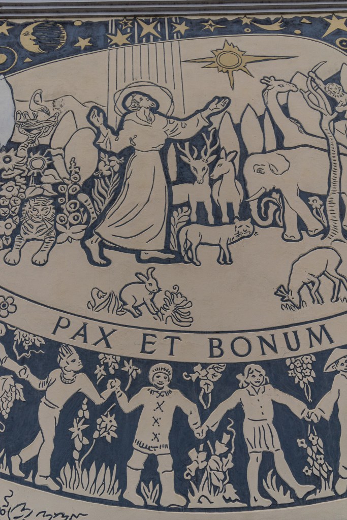 Jest chociażby kościół Najświętszego Serca Pana Jezusa i św. Ojca Pio, który przy ul. Paderewskiego działa w obecnym kształcie od 1946 roku. Wcześniej jednak, od lat 20. XX wieku stała tutaj pierwotna świątynia, utworzona w ramach zaadaptowania i przebudowy… sali widowiskowej zajazdu „Concordia”. Obok jest też budynek plebani, na którym umieszczono swego rodzaju, katolicki mural, przedstawiający biblijną scenę. Nie pytajcie tylko jaką, bo mógłbym tutaj popełnić spore faux pas. Jest też hasło: „PAX ET BONUM” czyli „POKÓJ I DOBRO”.