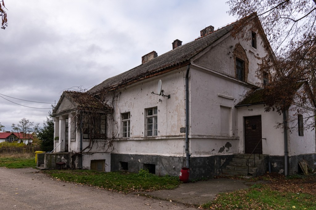 Miejsce to cały czas było jednak uważane za atrakcyjne, toteż w pierwszej połowie XIX wieku powstał tutaj zespół podworski. W skład kompleksu wchodził zespół dworsko-parkowy, podwórze gospodarcze i niewielka kolonia mieszkalna. Dość silnie przekształcone i (niestety) zdewastowane pozostałości możecie zobaczyć do dzisiaj na końcu ul. Droga Kurpiowska. Zachował się już tylko dom mieszkalny (zdaje się, że wciąż ktoś w nim mieszka, lecz obawiam się, że w bardzo kiepskich warunkach), ewidentnie mający dworską przeszłość i kilka innych, ale już kompletnie zrujnowanych obiektów. Dla przykładu, tuż obok stoi wypalony, pozbawiony szyb budynek, wyglądający trochę jak dawna stołówka.