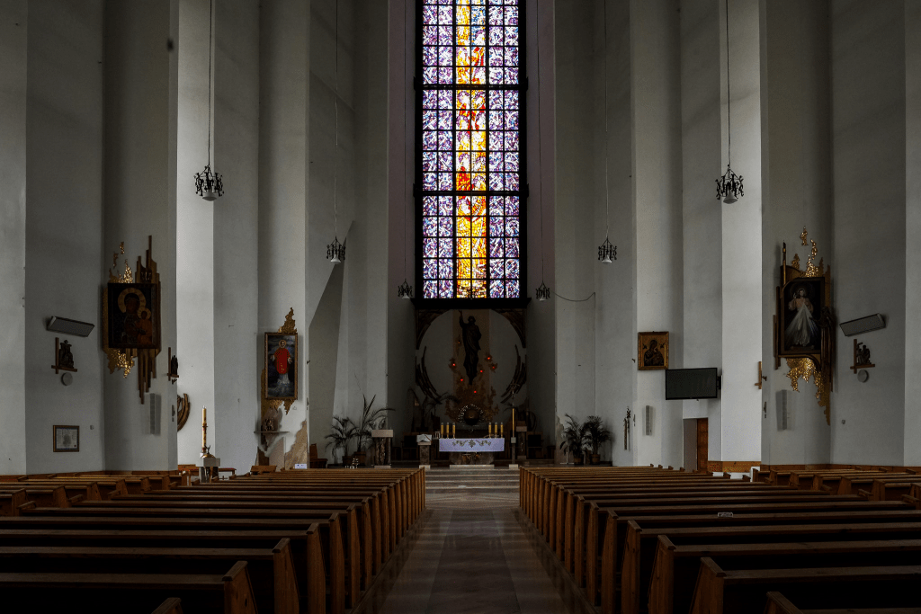 Całość, utrzymaną w typowym dla tamtych lat, stylu brutalistycznym, zaprojektował profesor Adam Szymski. Tak naprawdę kościół budowano przez wiele lat, bo konsekracja nastąpiła dopiero w 2008 roku. Wcześniej, w 2001 roku, zamontowano m.in. górujący nad budowlą do dziś, ponad 20-metrowy i ważący 11,5 tony, krzyż. Wszystko to sprawia, że gmach, szczególnie w otoczeniu sąsiedniej, niskiej zabudowy robi wrażenie naprawdę masywnego i monumentalnego.
