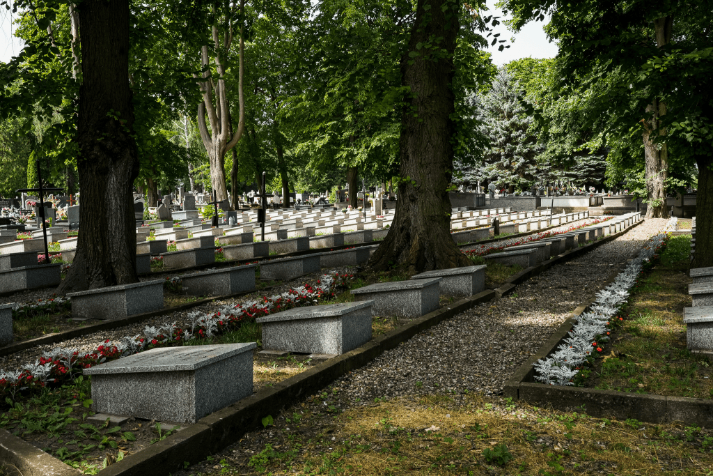 A odczuwa się ją choćby spoglądając na daty śmierci osób, pochowanych w najstarszych mogiłach, które sięgają końca lat 20. lub początku lat 30. XX wieku. No i w pomnikach, rzeźbach, małej architekturze, stanowiących – zgodnie z ówczesną modłą – przykłady małych dzieł sztuki. Co istotne, niektóre z tutejszych pomników to dzieła bydgoskiego mistrza dłuta, Piotra Trieblera (więcej o jego tragicznej historii pisałem w artykule poświęconym bydgoskiemu osiedlu Błonie, czyli TUTAJ).